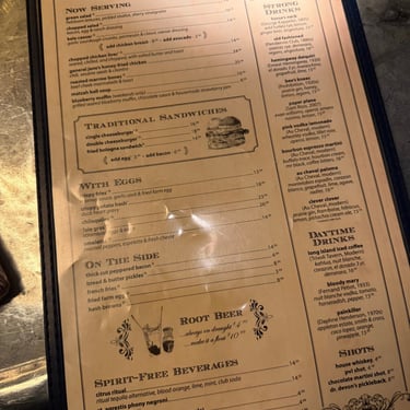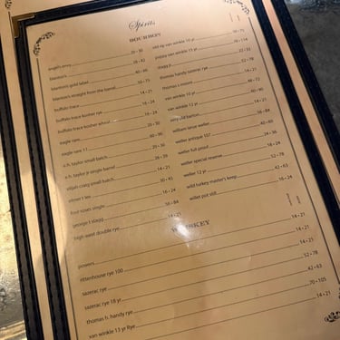 It's a small menu of amazing food items. I've heard wonderful things about both the fried chicken and the bologna sandwich. The bourbon and whiskey menu is insane, offering an extensive selection that matches the quality of the food.