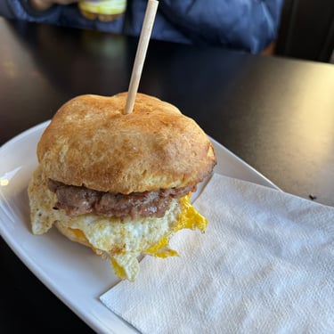 The house-made syrups elevate every drink. The butter pecan latte delivers subtle sweetness without being overwhelming. The vanilla matcha is refreshing and perfectly balanced. The biscuits and gravy are legitimately the best I've had at a cafe. The maple-glazed breakfast sausage on that sandwich shines with maple butter as a bonus. The grilled cheese hits that comfort food spot perfectly.